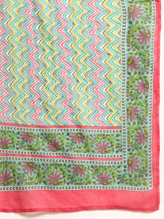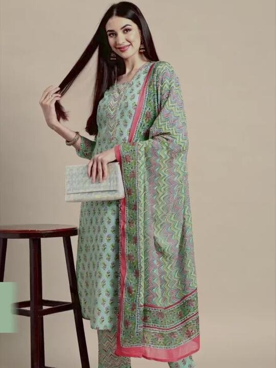 • Turquoise blue printed Kurta with Trousers with dupatta