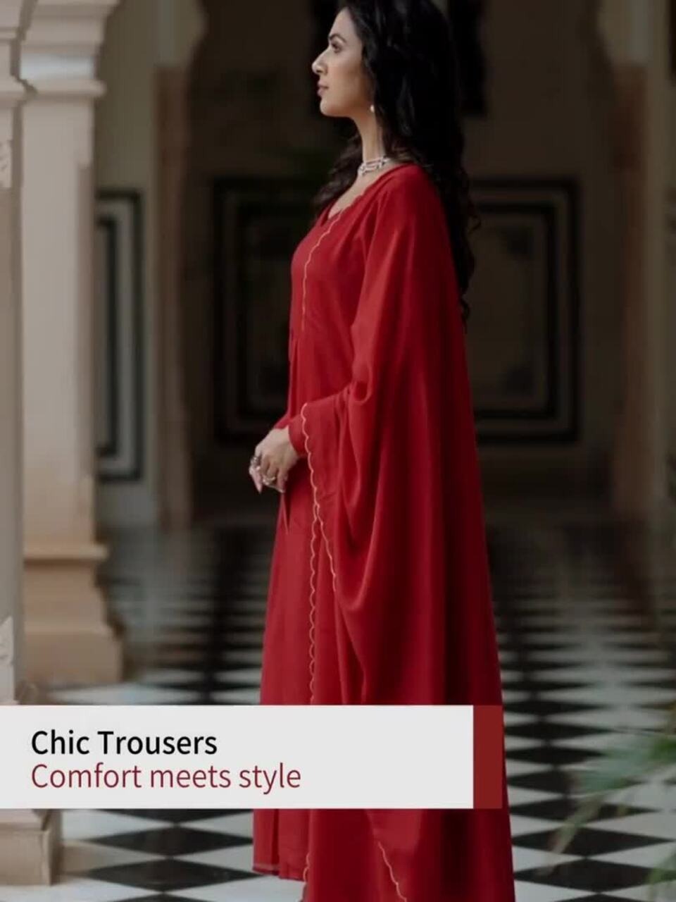 • Red solid Kurta with Trousers with dupatta