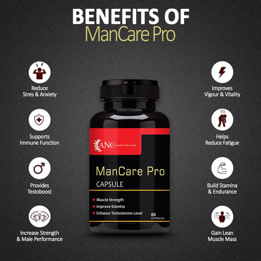 • Energy Booster For Men- Overall health, enhance stamina, boost endurance, and promote an active life in men. ANC ManCare Pro T Booster has a perfect quantity of these ingredients in the most natural way.