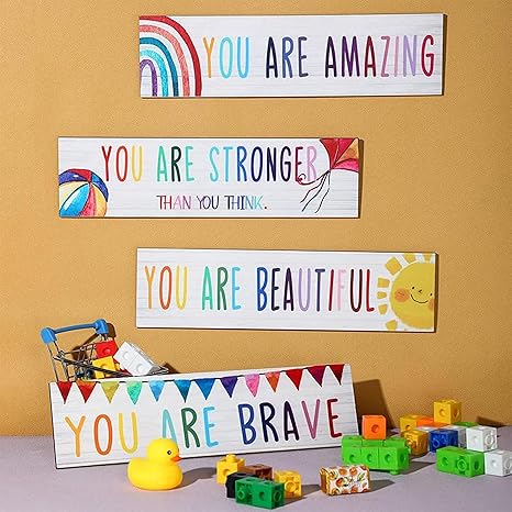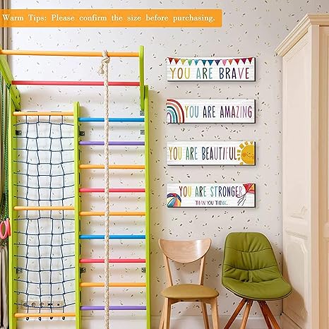 - Gifts for children: our kids room decors for girls are designed with 4 different encouraging words with cute cartoon patterns, which can bring courage and vitality to your children; The playroom decors are suitable for birthday gifts, school start gifts, etc., for your sons and daughters to remind your children of their excellent qualities