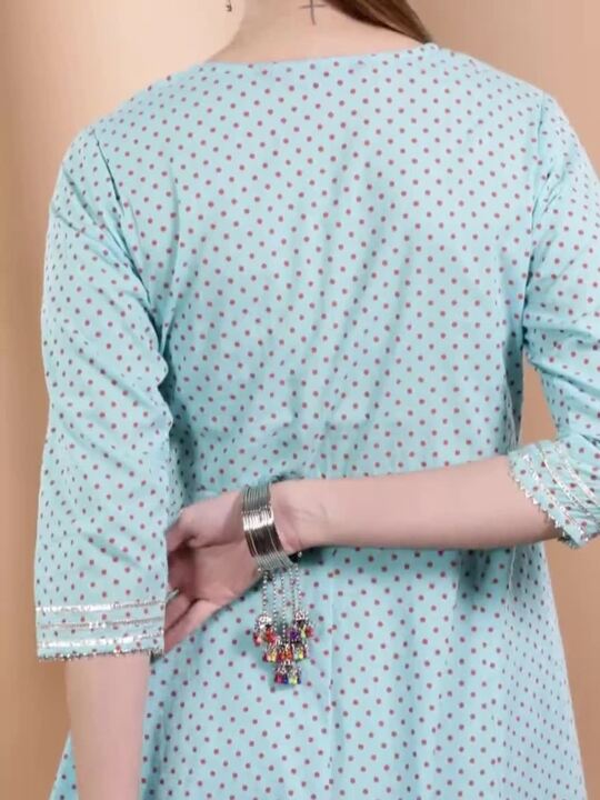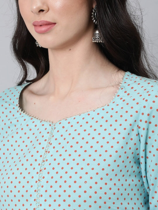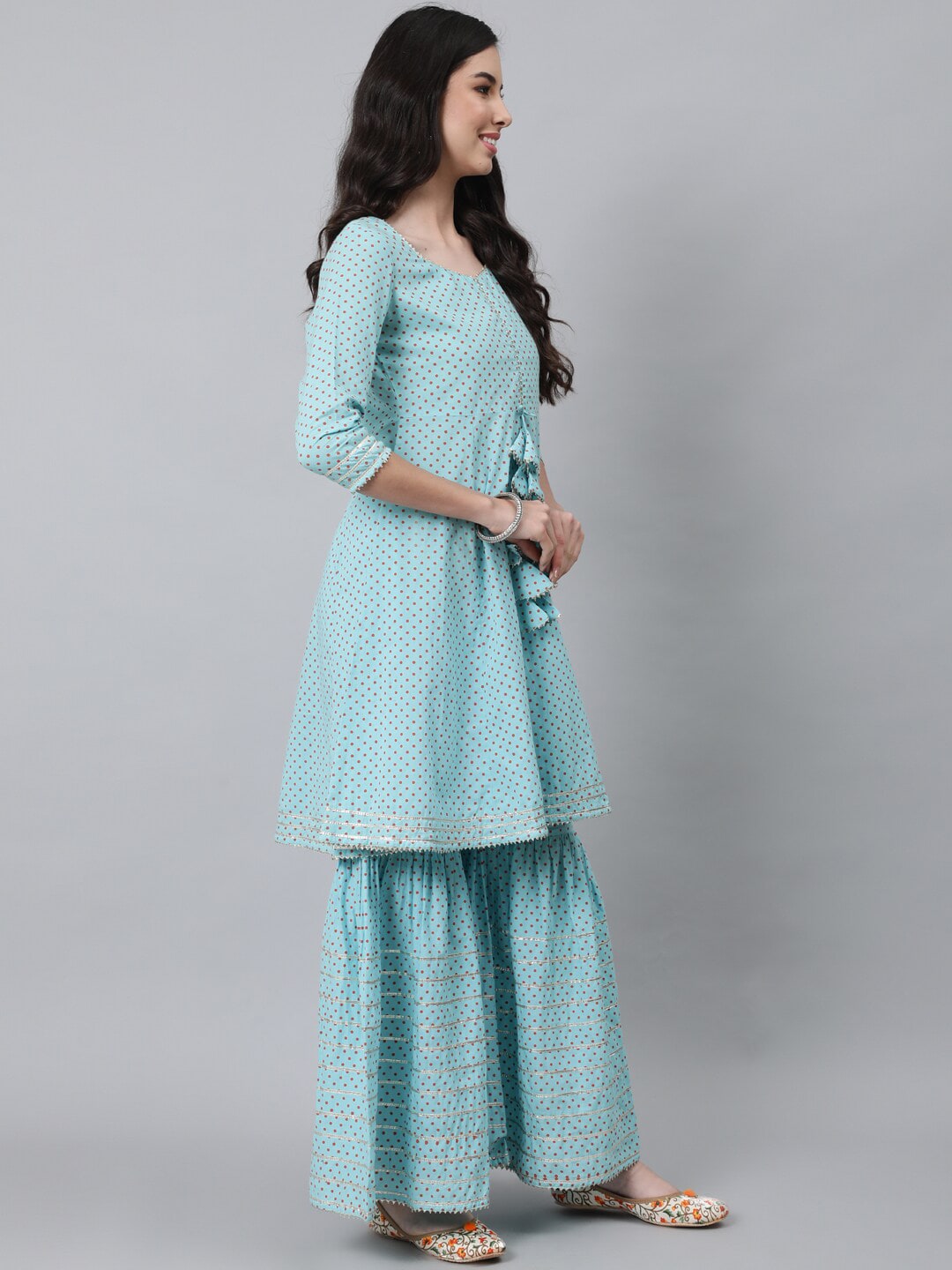 Anubhutee Women Blue Empire Pure Cotton Kurta with Sharara & With Dupatta