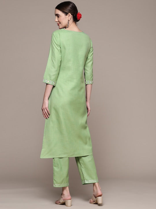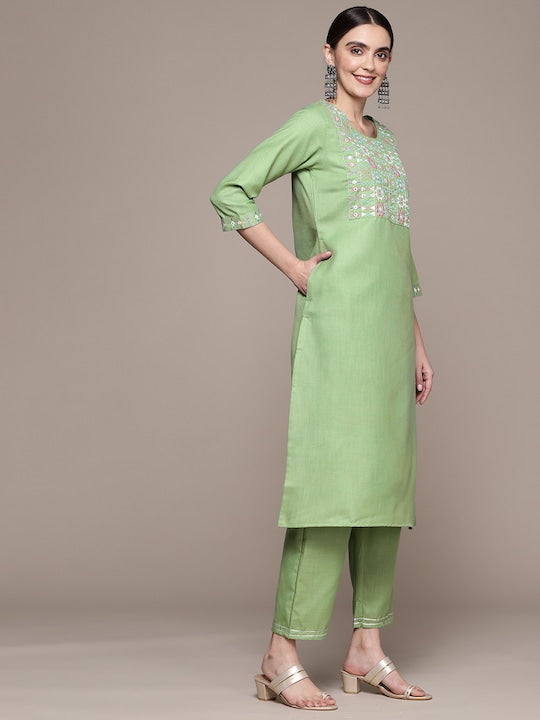 Anubhutee Women Ethnic Motifs Embroidered Thread Work Kurta With Trousers