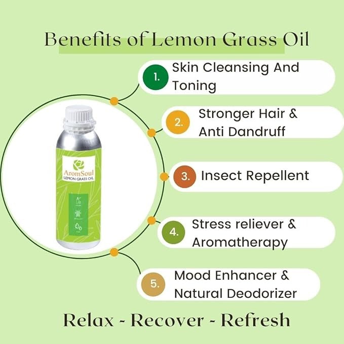 • Mood Enhancer: The calming and fresh lemony aroma of lemongrass oil helps to uplift mood and spirit when used in aromatherapy or with aroma diffuser for a refreshed and energized feeling.