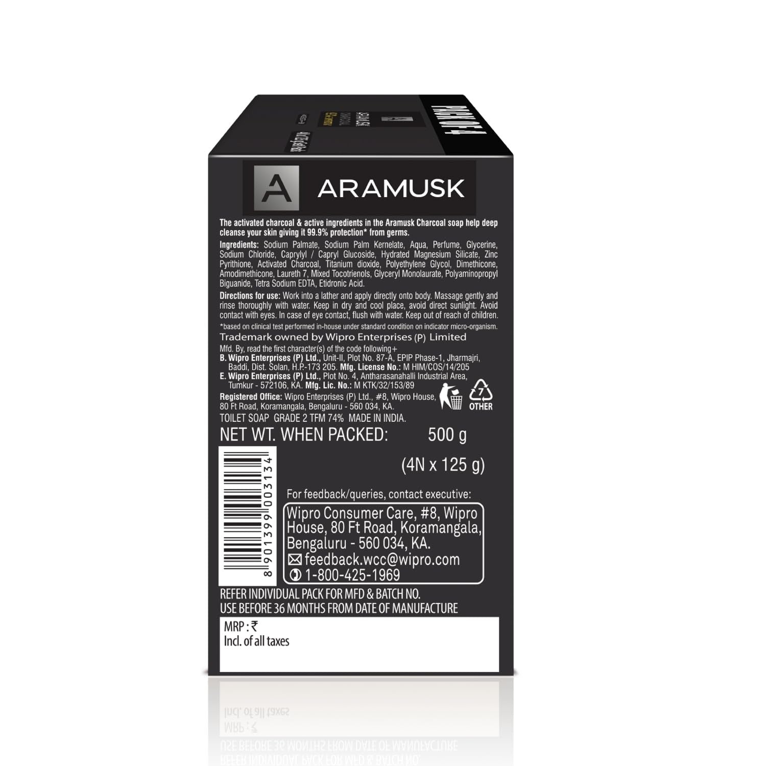 Aramusk Charcoal Soap for Men - 125 gms (Pack of 4)