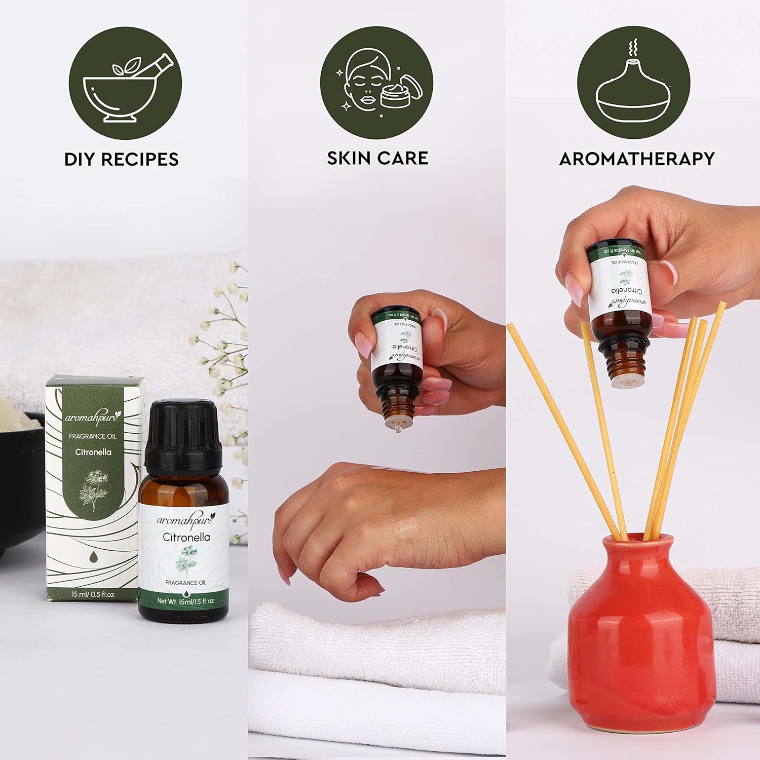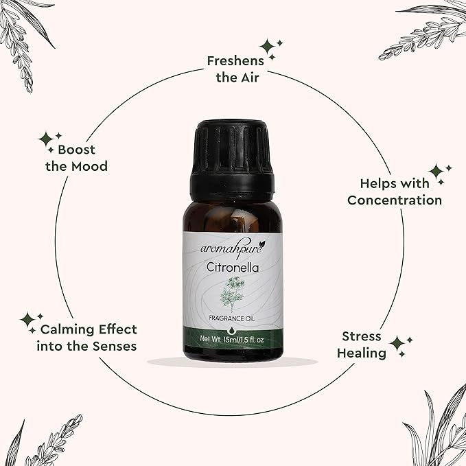 • Package Contains: Aromahpure Citronella Fragrance Oil (15ml)