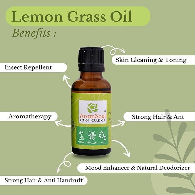 Aromsoul Natural and Pure Therapeutic Grade Lemon Grass Essential Oil - 30 ml
