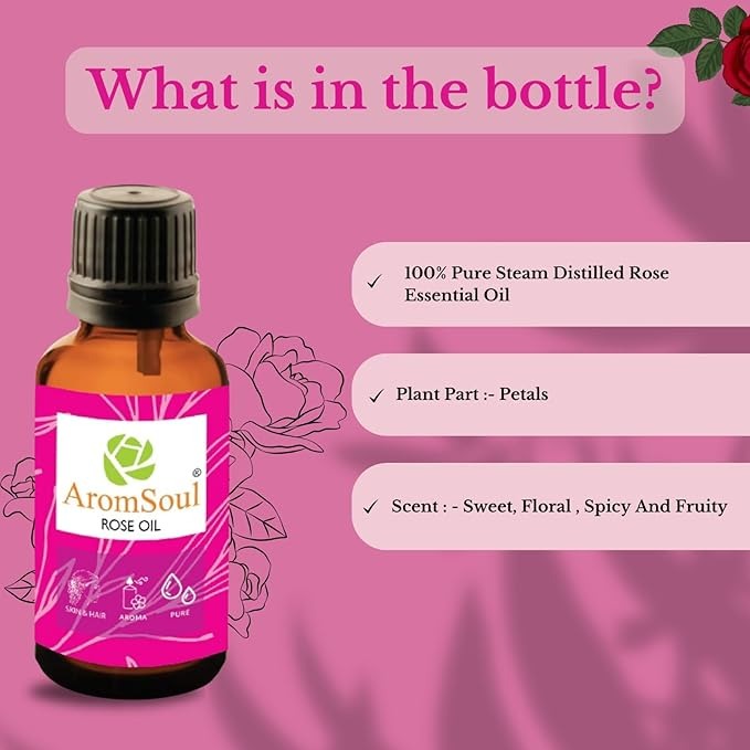 • Ingredients:-Pure Steam Distilled Rose Essential Oil.