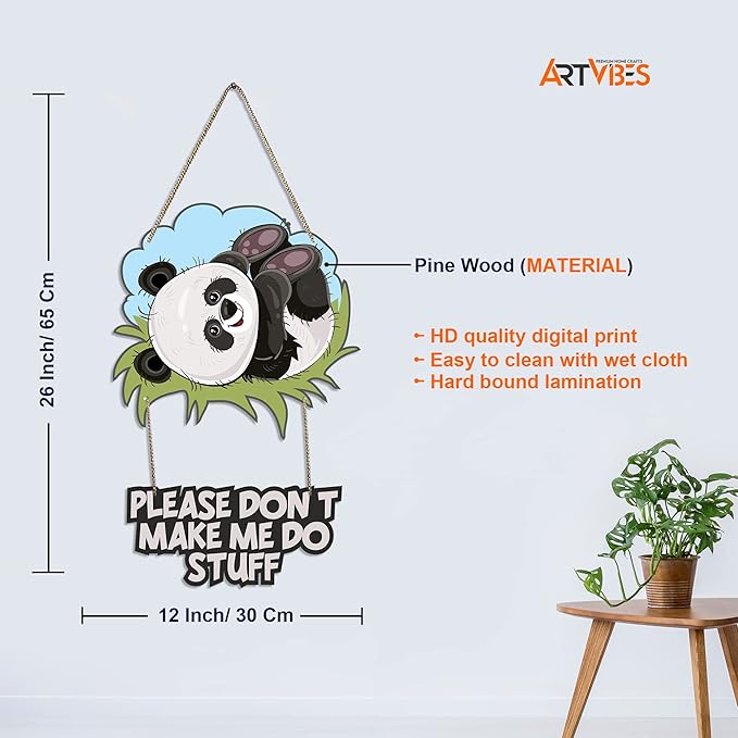 Artvibes Cute Panda Printed Wooden Wall Hanging With Quotes for Home Decor | Modern Artworks Decoration