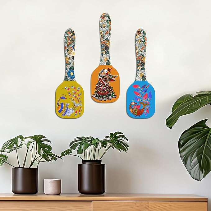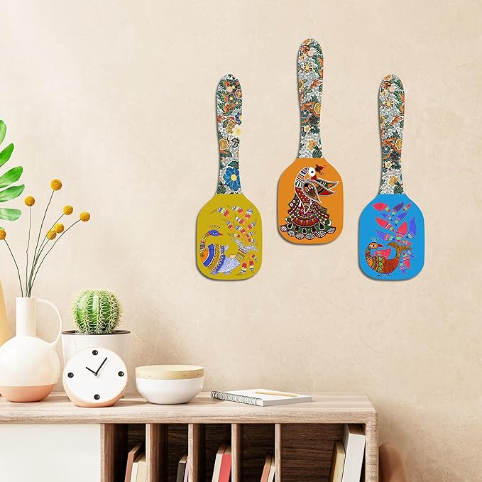Artvibes Decorative Kalamkari Floral Art Wooden Wall Hanging Decoration Item for Home | Set of 3