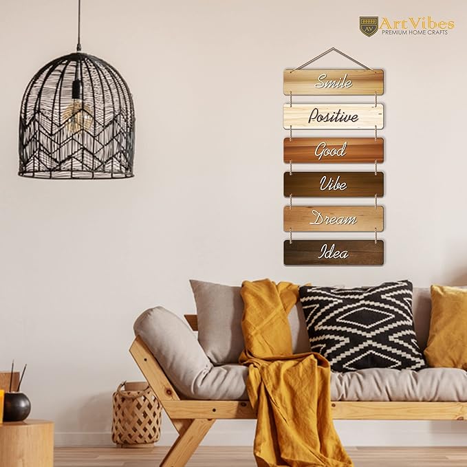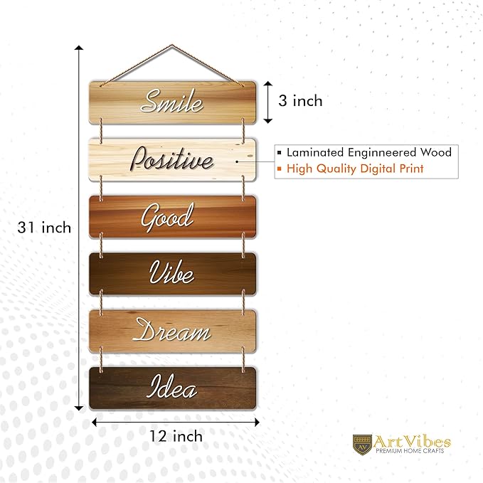 Artvibes Decorative Wall Hanging Wooden Art Decoration Item for Living Room | Mdf Wall Decoration | Set of 6