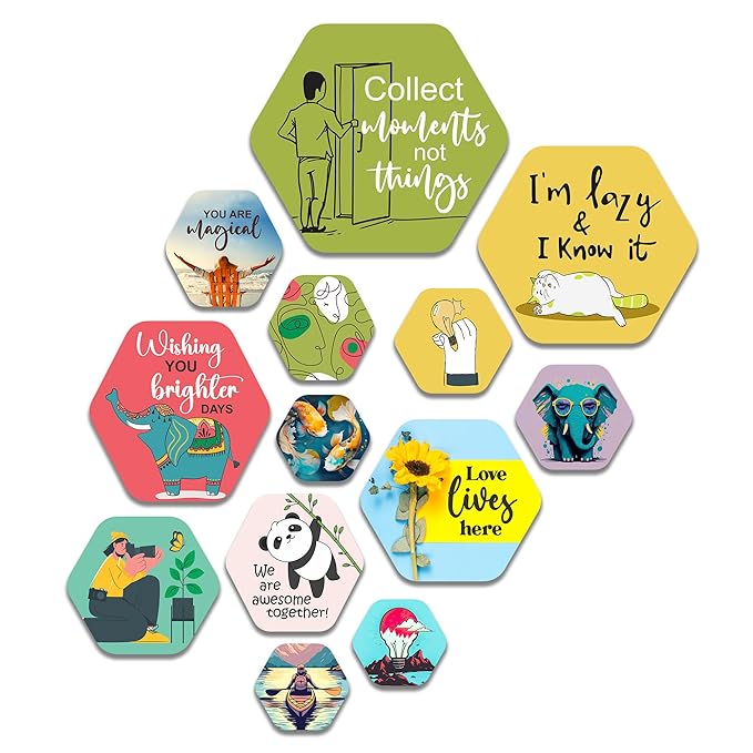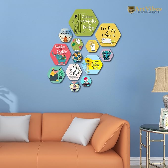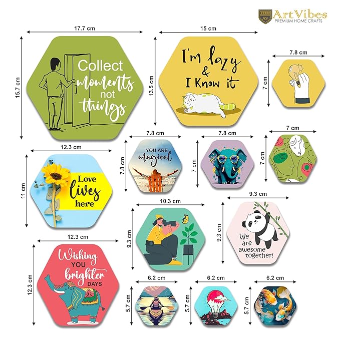 Artvibes Decorative Wooden Wall Hanging Decoration for Home | Quote Decor Item | Pack of 13 Pieces