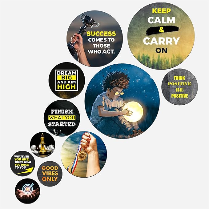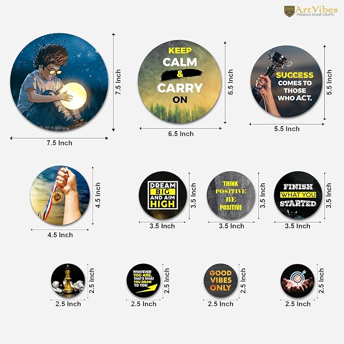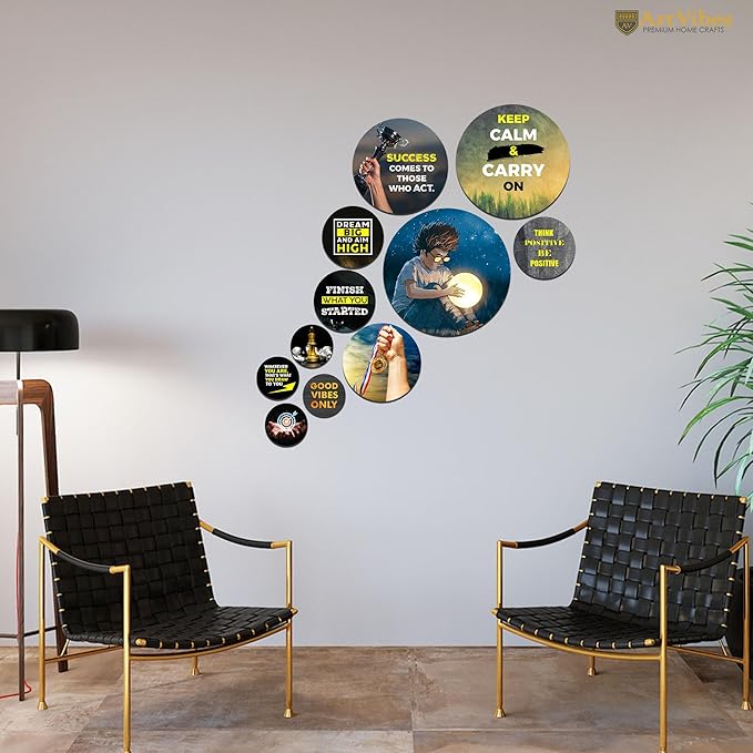 Artvibes Decorative Wooden Wall Hanging Decoration Item for Home | Quotes Decor Item | Pack of 11 Pieces