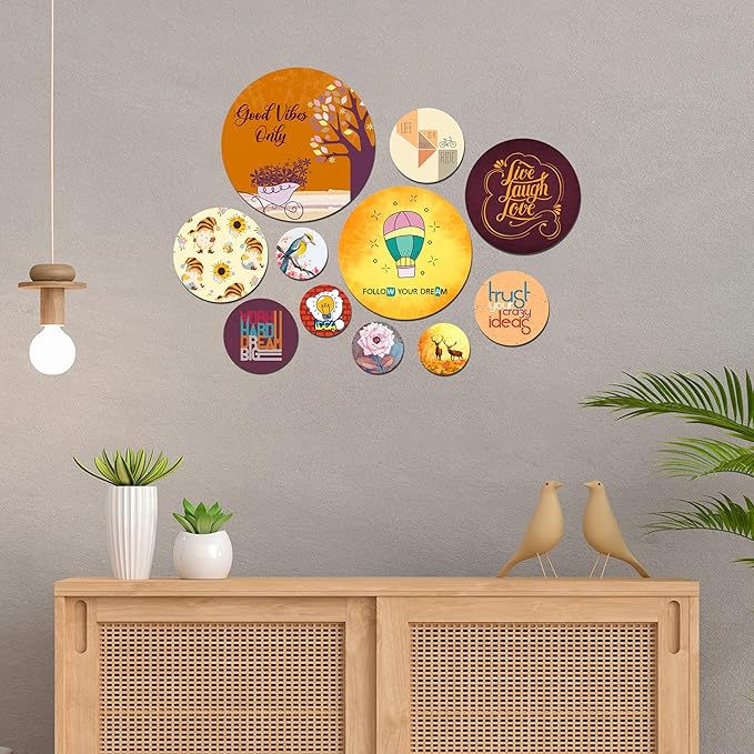 Artvibes Designer Mdf Wooden Wall Hangers for Home Decoration | Decor Hanging Ornaments | Pack of 11 Pieces