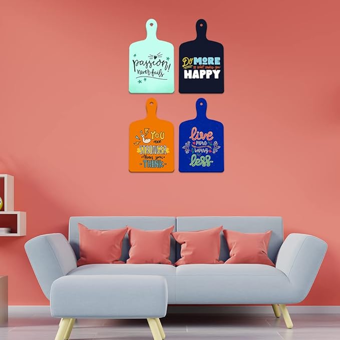 Artvibes Designer Wooden Wall Hanging for Home Decor | Motivational Quotes Decorative Items | Artworks Hanger | Set of 4