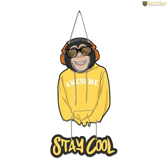 Artvibes Modern Monkey Wooden Wall Hanging With Quotes for Home Decor | Wooden Decorative Items | Artworks Wall Hangings