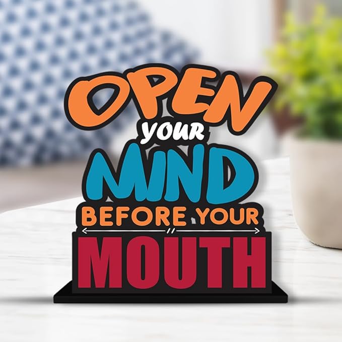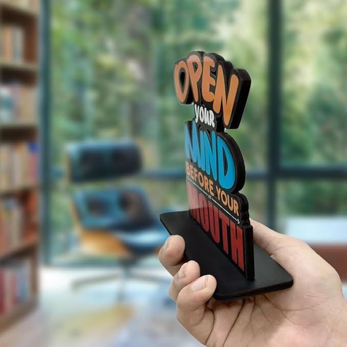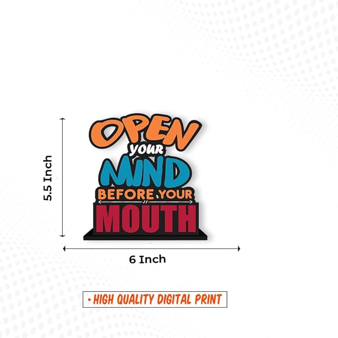 Artvibes Wooden Idols and Figurine Open Your Mind Before Your Mouth Quote Table Decor for Office Desk | Home Decor Item