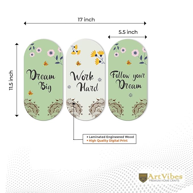 Artvibes Work Hard Motivational Quote Wall Hanging Decoration for Home | Wooden Decorative Hanger | Set of 3
