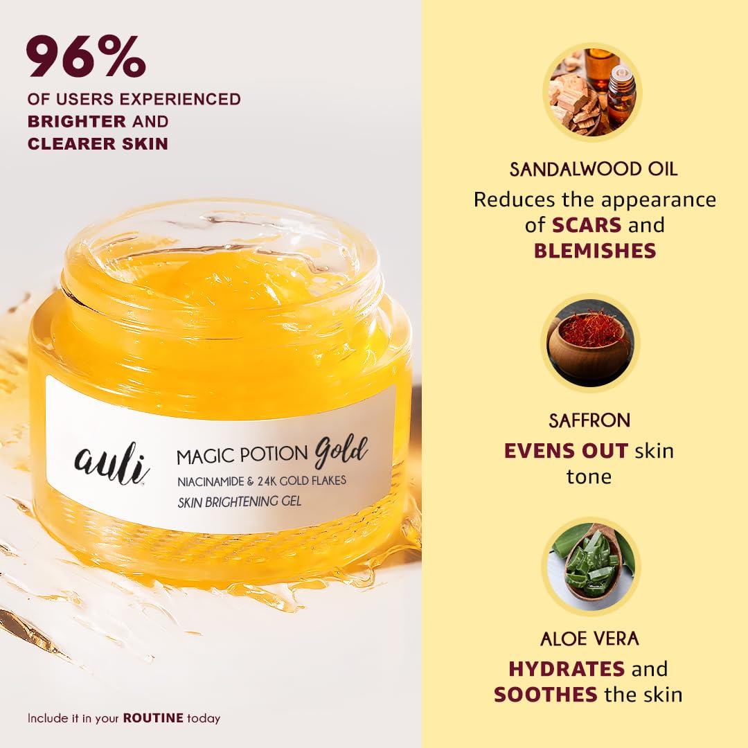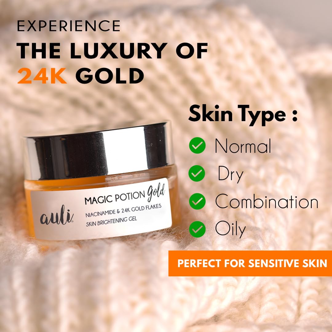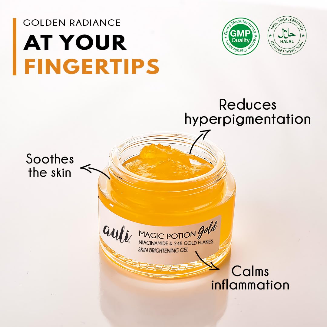 Auli Magic Potion Gold Niacinamide 24k Gold Flakes Skin Brightening Gel - 60 gms (Pack of 2)