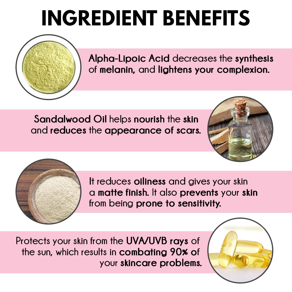 • Alpha-lipoic acid brightens the complexion and reverses dull skin.