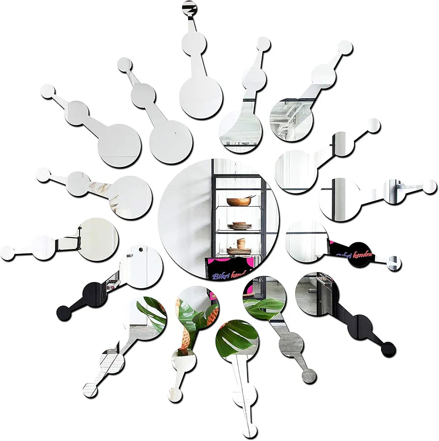 Bikri Kendra Sun Silver Model-7 Mirror Stickers for Wall, Acrylic Mirror Wall Decor Sticker