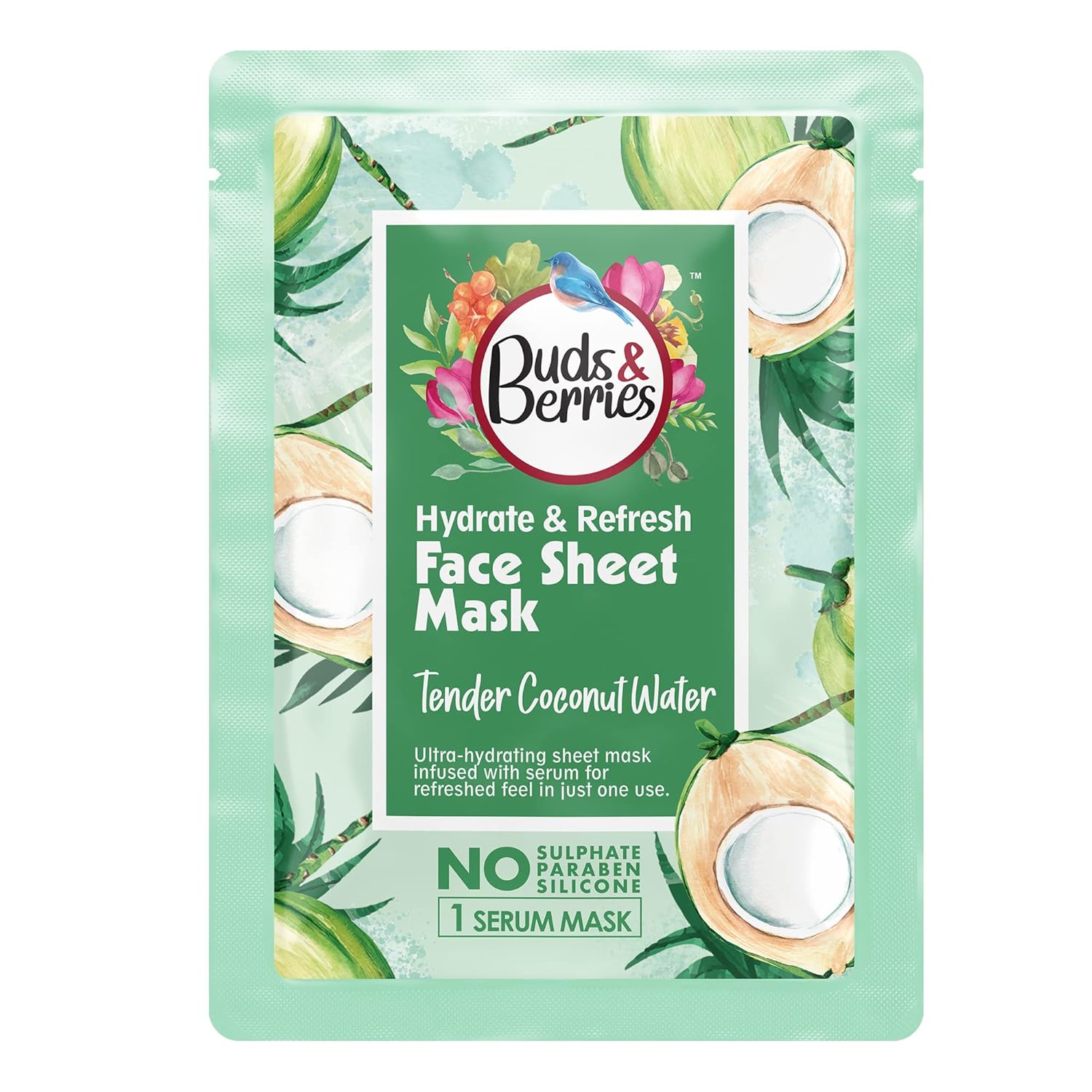 Buds & Berries Refreshing Tender Coconut Water Face Sheet Mask - 25 gms