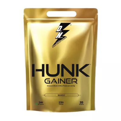 - Hunk Gainer is a Calorie & high-quality supplement with added Digestive Enzymes to help you put on healthy muscle mass & Increase strength