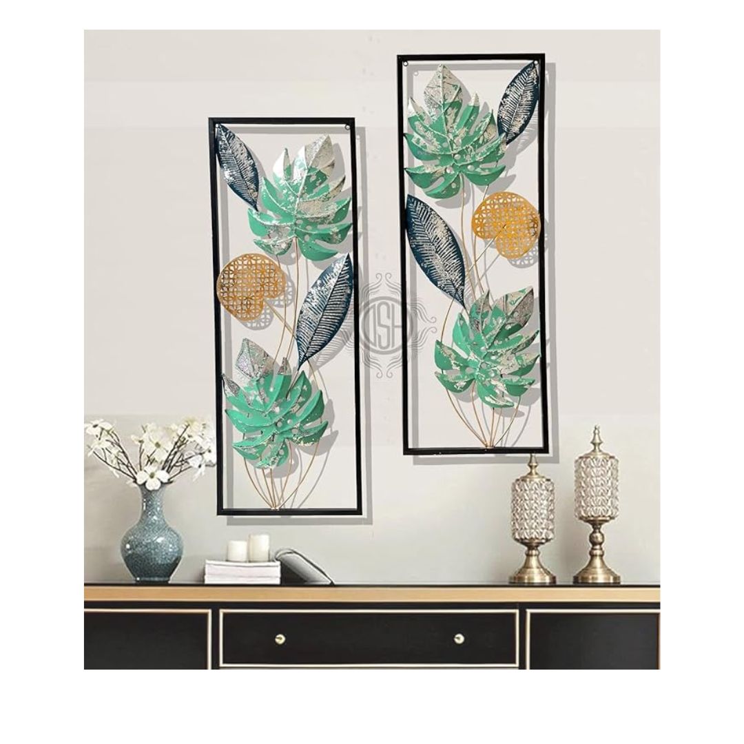 DSH Crafting Your Curiosity Metal Wall Art Wall Sculpture Wall Decor Set of-2 Multicolour Green Leaf