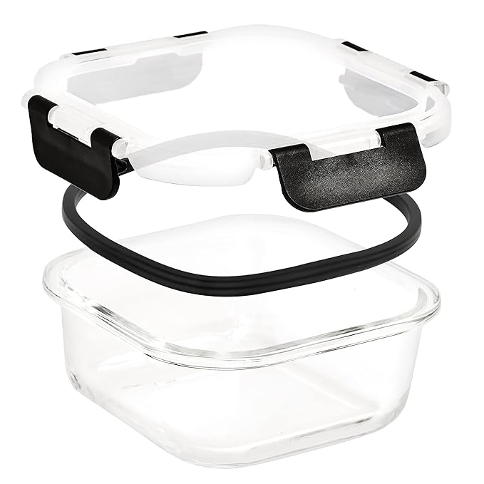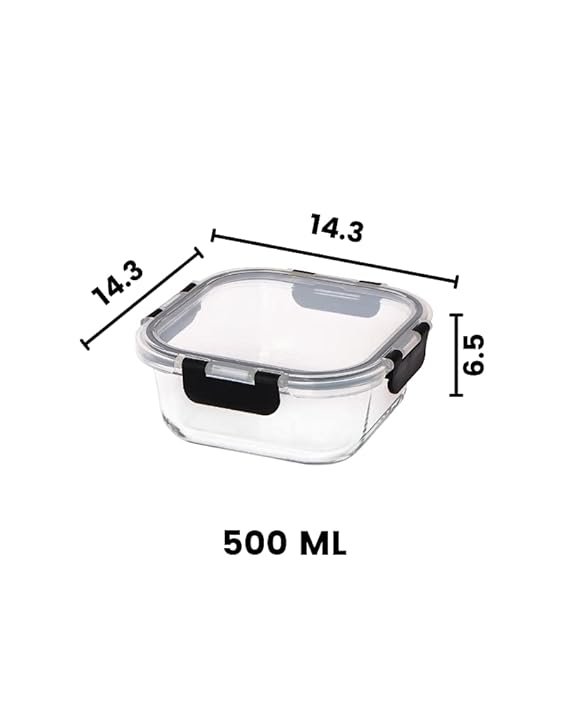 Femora Borosilicate Square Microwave Oven Safe Glass Container With Dectahable & Break Free Lid | Black Color | 500 Ml