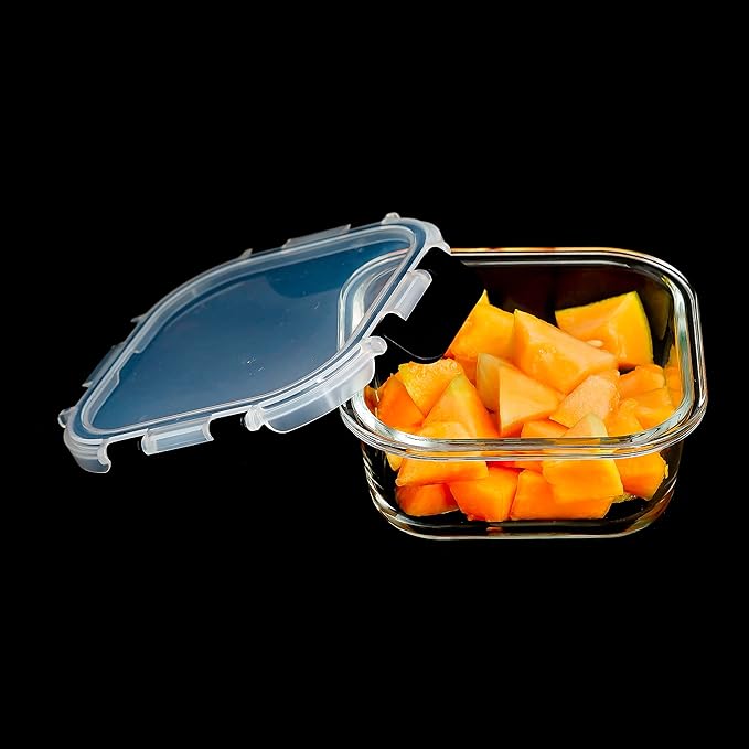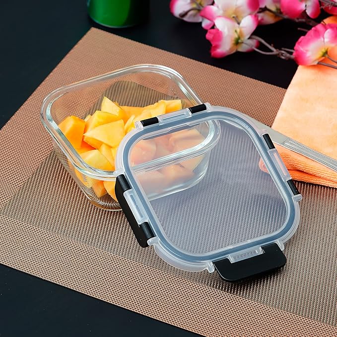 Femora Borosilicate Square Microwave Oven Safe Glass Container With Dectahable & Break Free Lid | Black Color | 800 Ml