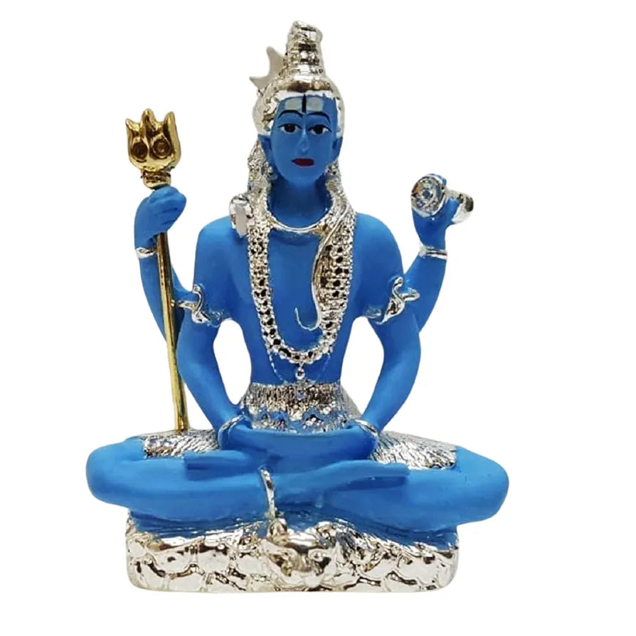 Gold Art India Resin 999 Silver Plated Blue Shiva Idol Blue