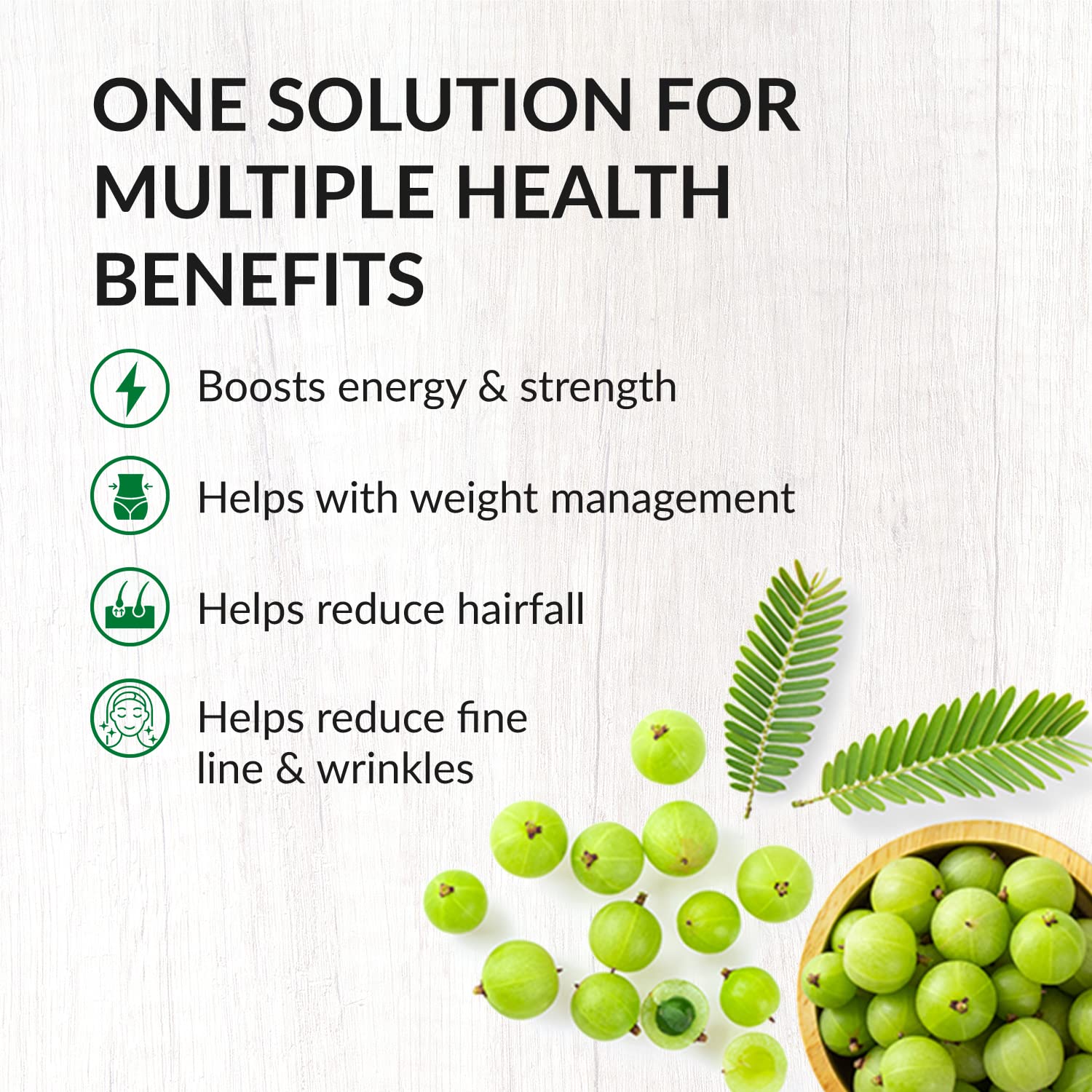 • Collagen Builder from Vitamin C is antioxidative and anti-inflammatory. It hydrates the skin and helps provide a youthful glow. Amla protects the skin against environmental pollutants, dirt, UV rays, and more