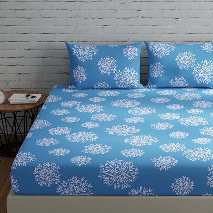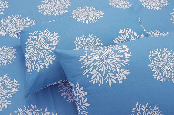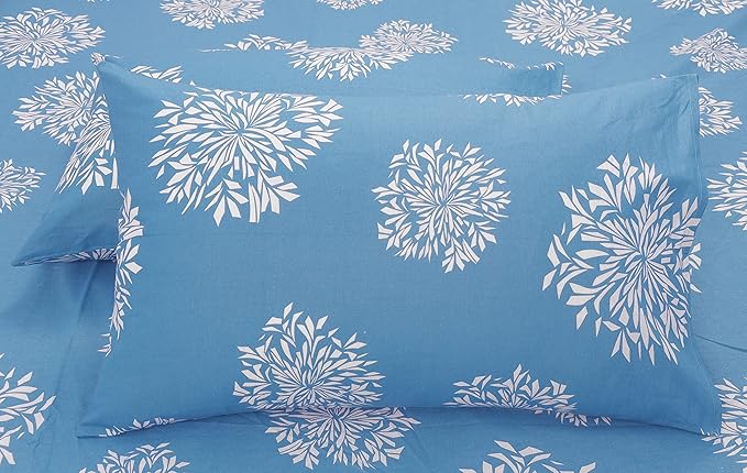 Huesland by Ahmedabad Cotton 144 TC Cotton Bedsheets for King Size Bed with 2 Pillow Covers | Blue