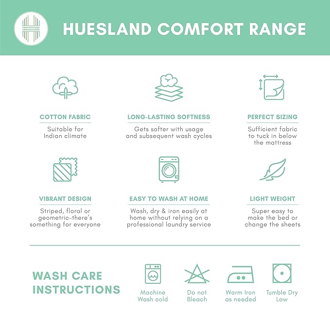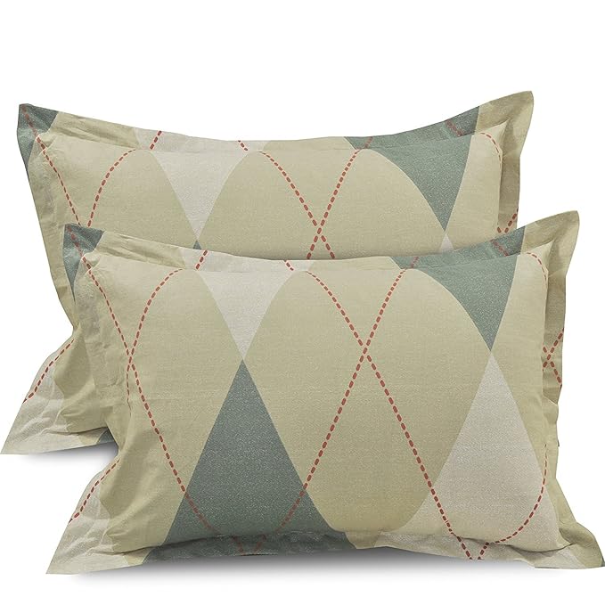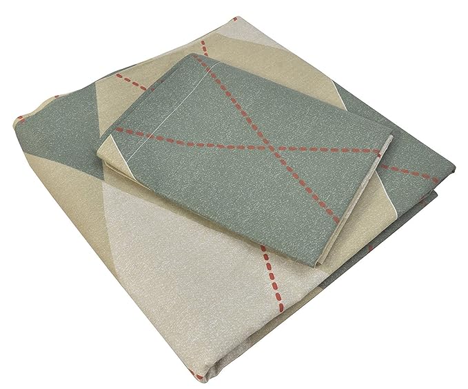Huesland by Ahmedabad Cotton 144 TC Cotton King Size Bedsheet with 2 Pillow Covers - Beige & Green