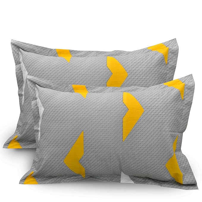 Huesland by Ahmedabad Cotton 144 TC Cotton King Size Bedsheet with 2 Pillow Covers - Grey & Yellow