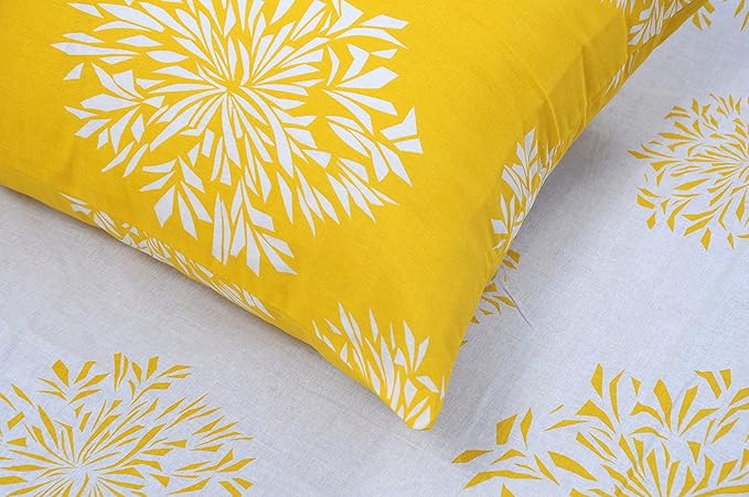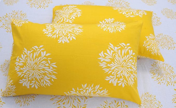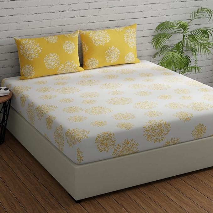 Huesland by Ahmedabad Cotton 144 TC King Size Bedsheet Cotton with 2 Pillow Covers | White & Yellow