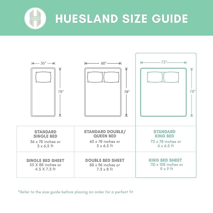 - King Size Bedsheet: 108 x 108 inches or 275 x 275 cm or 9 ft x 9 ft, Pillow Cover: 17 x 27 inches or 43 x 68 cm