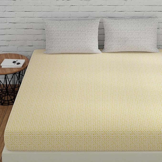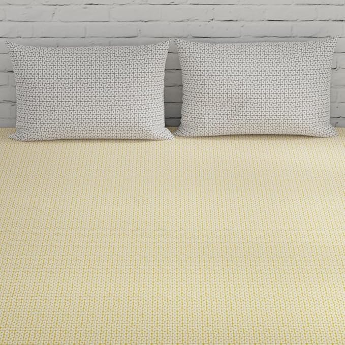 Huesland by Ahmedabad Cotton 144 TC King Size Bedsheet Cotton with 2 Pillow Covers | Yellow & Grey