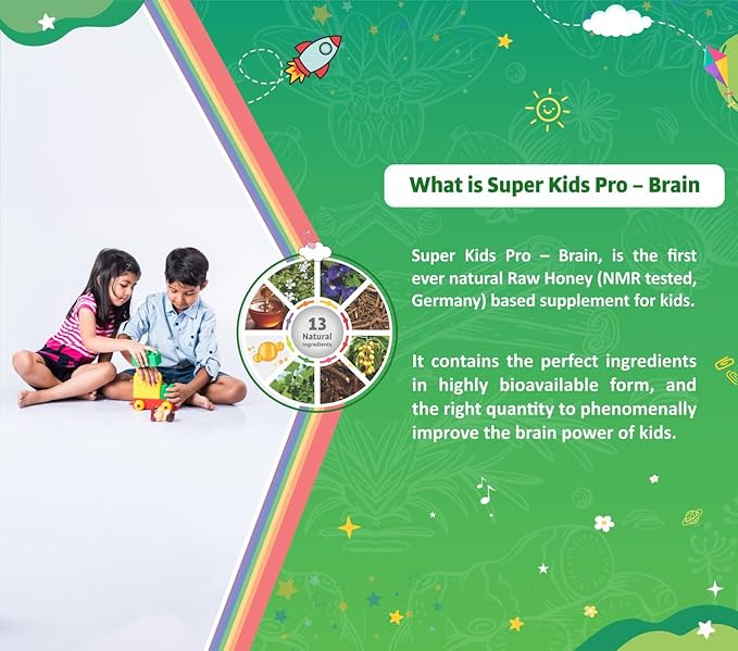 - Super Kids Pro – Brain, is the first ever natural Raw Honey (NMR tested, Germany) based supplement for kids.