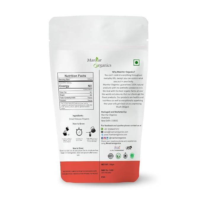 • ManHar Organics Hibiscus Flowers Herbal Tea is made from carefully dried hibiscus flowers, offering a naturally vibrant color and refreshing floral taste. This caffeine-free herbal tea ingredient is suitable for a variety of beverage and culinary preparations and can be enjoyed hot or cold as part of everyday routines.