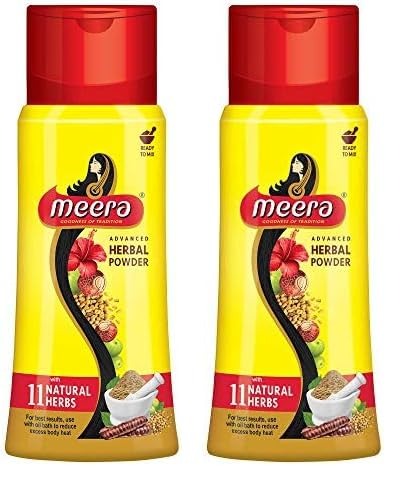 • Meera is the authentic herbal solution for all your hair problems! According to Ayurvedic Literature, one of the causes for hair problems could be excess body heat. Cool your body with a weekly routine of oil bath with Meera Herbal powder which is an aromatic blend of roots, flowers and leaves from 7 natural herbs. This traditional routine of oil bath with Meera Herbal powder cools your body, strengthen and nourishes your hair from rot to tip giving you healthy and problem-free hair.