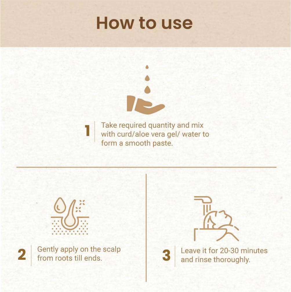• Take the required quantity and mix with curd/ aloe vera gel/ water to form a smooth paste.