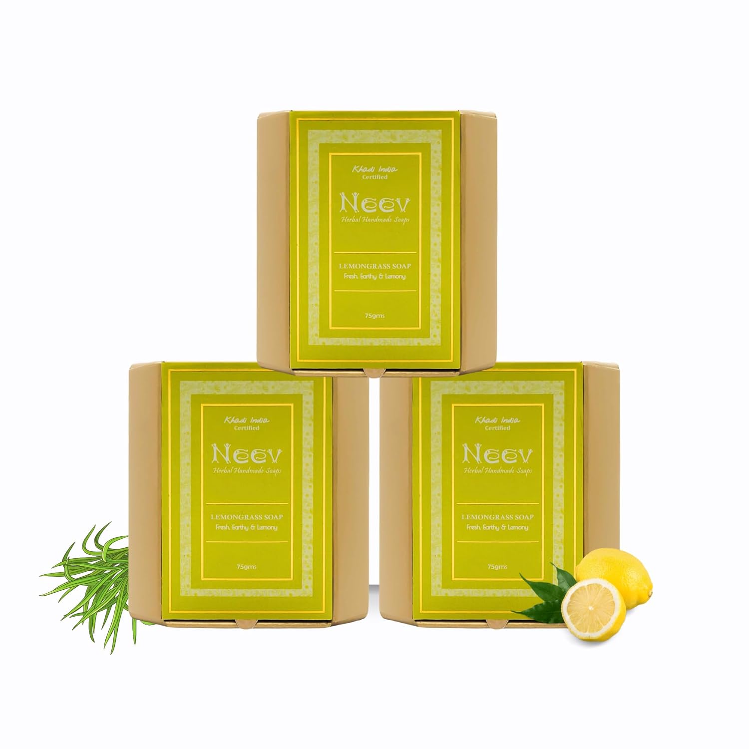 Neev Lemongrass Handmade Soap - 75 gms (Pack of 3)