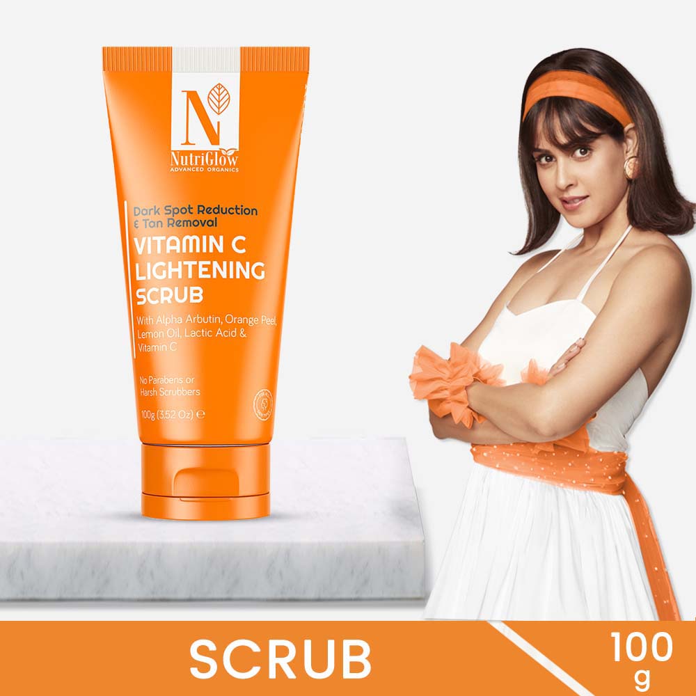 - There is a solution made for everything, and while keeping this in mind, we are astounded to introduce the NutriGlow Advanced Organics Vitamin C Lightening Scrub, which is loaded with the goodies like alpha arbutin, orange peel, lemon oil, lactic acid, and Vitamin C.