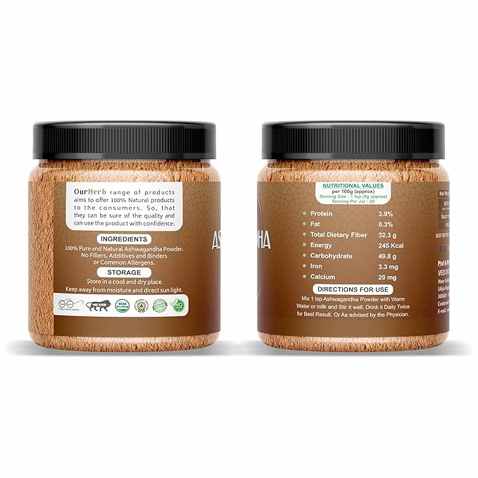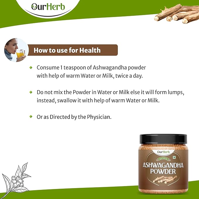 • Organically Grown: OurHerb Ashwagandha Powder is made from organically grown Ashwagandha roots, delivering natural benefits without any additives or preservatives.