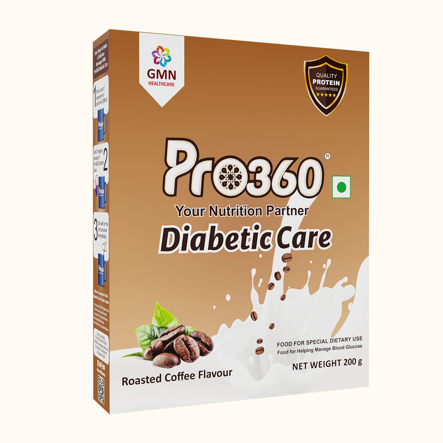 - Diabetes care protein powder : pro360 diabetic care, provides advanced nutrition for diabetic management, also comes in delicious flavours of vanilla, chocolate, badam, roasted coffee.