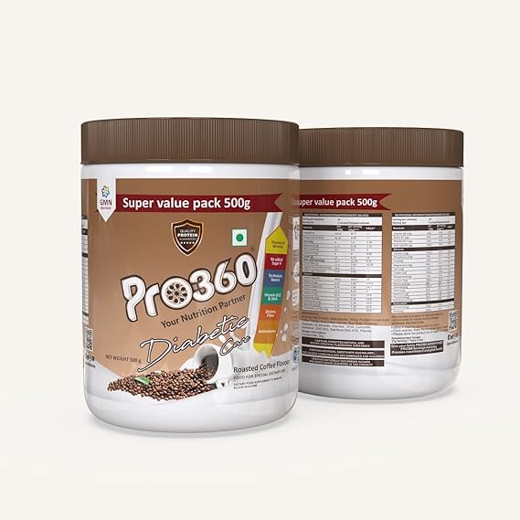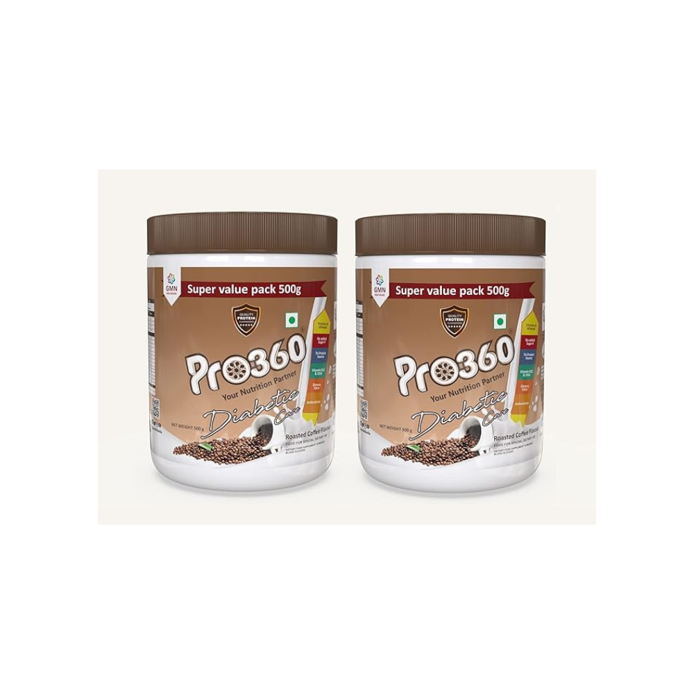 Pro360 Diabetic Care Protein Powder Roasted Coffee Flavour - 500 gms (Pack of 2)