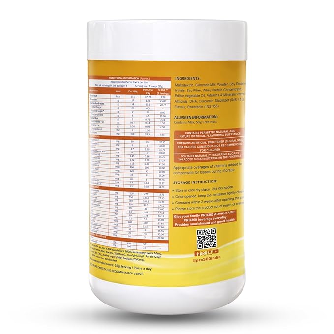 - Pro360's unique formula provides an amazing dose of protein as well. The tri-protein formula consists of skimmed milk powder, whey protein, and soy protein – the combination that makes an ideal protein-rich meal.