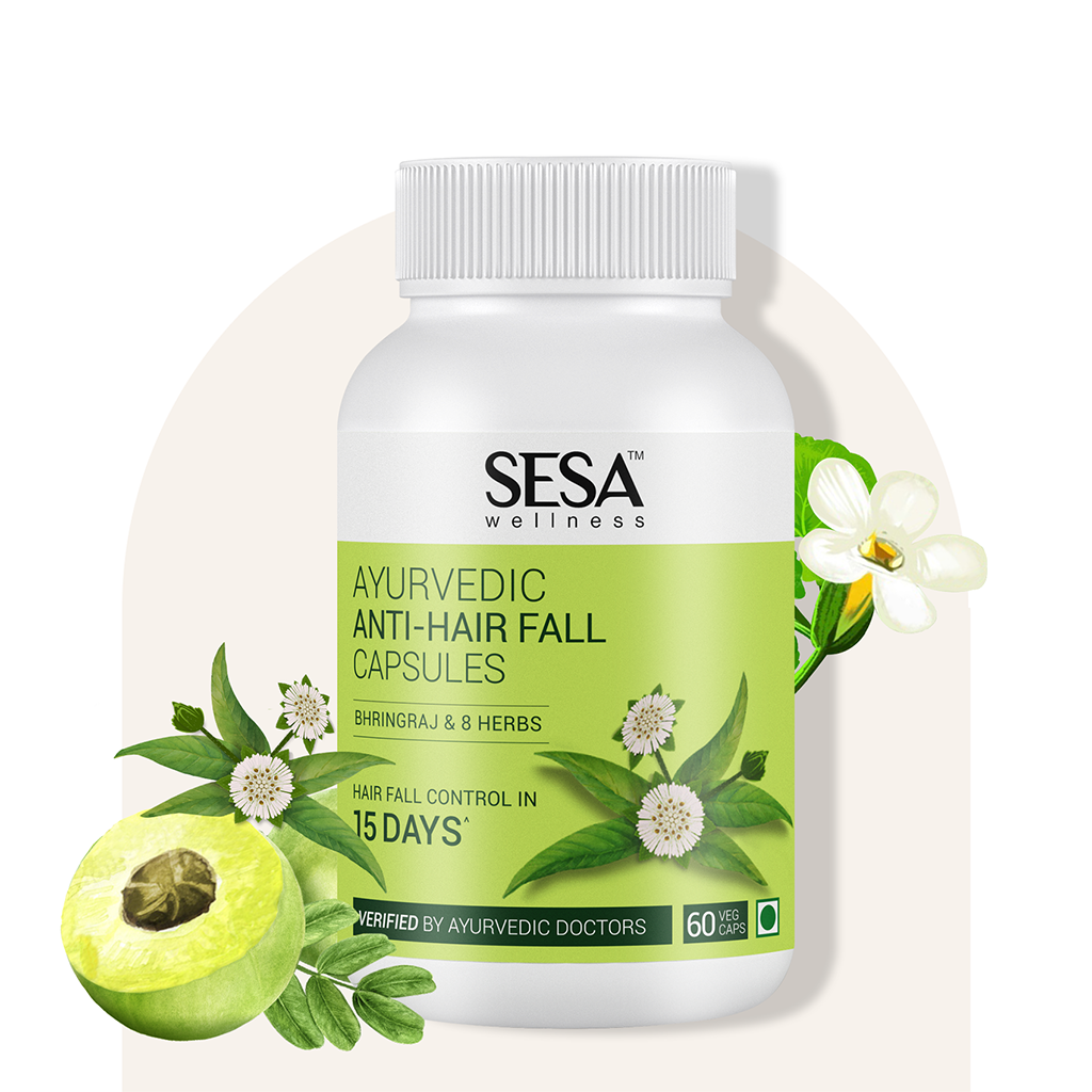 - These 100% Veg capsules help control hair fall in 15 days when used along with Sesa Ayurvedic Oil & Shampoo 3 times a week.