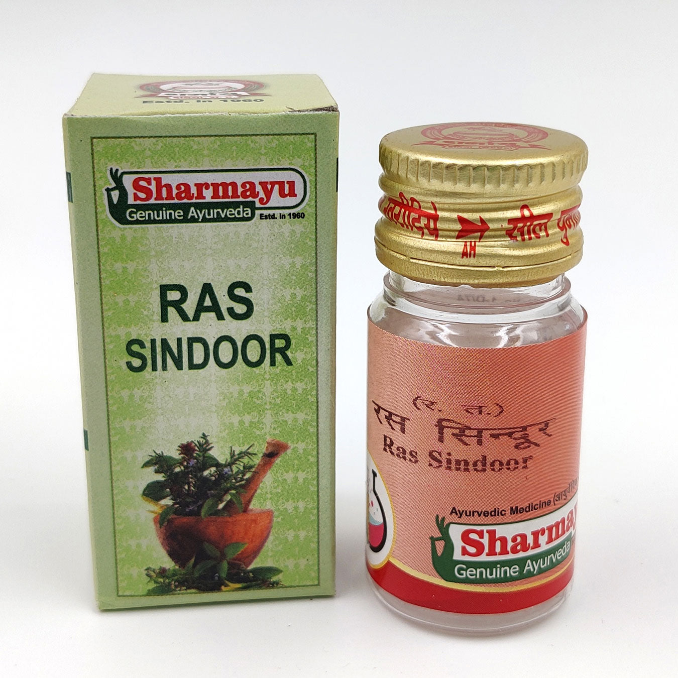 - Sharmayu Ayurveda Ras Sindoor is a classical Ayurvedic mineral formulation prepared through meticulous purification and processing techniques.