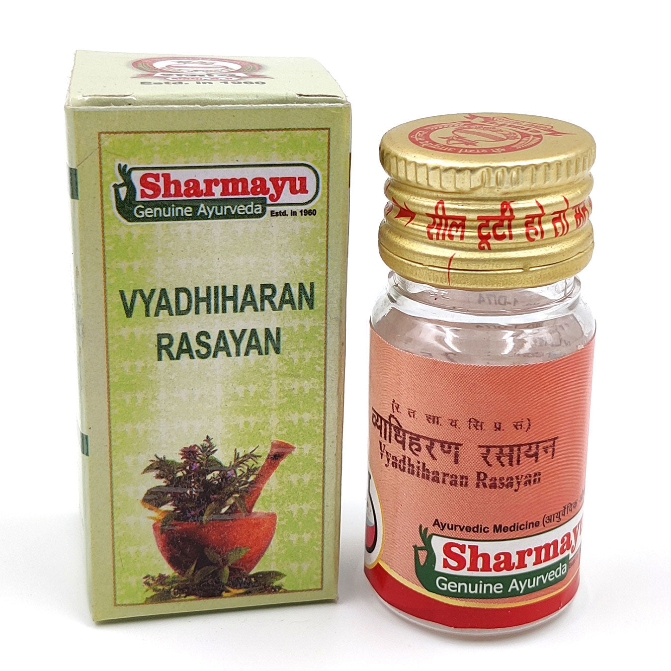 - Sharmayu Ayurveda Vyadhiharan Rasayan is a finely processed herbo-mineral tablet, crafted using traditional Ayurvedic methods.